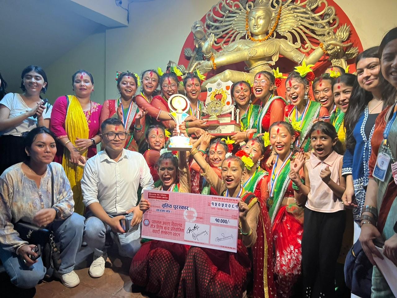 काठमाडौं । काठमाडौँ जिल्ला प्याब्सनद्वारा अन्तर विद्यालय स्तरीय तीज नृत्य प्रतियोगितामा अवेरनेस इन्टरनेसनल एकेडेमी (एआईए) उत्कृष्ट तेस्रो विद्यालयको रूपमा पुरस्कृत भएको छ । प्याब्सन अन्तर विद्यालय तीज विशेष नृत्य प्रतियोगिताको एघारौ संस्करण–२०८१ म एआइएले तृतीय स्थान हासिल गर्दै पुरस्कृत भएको हो ।